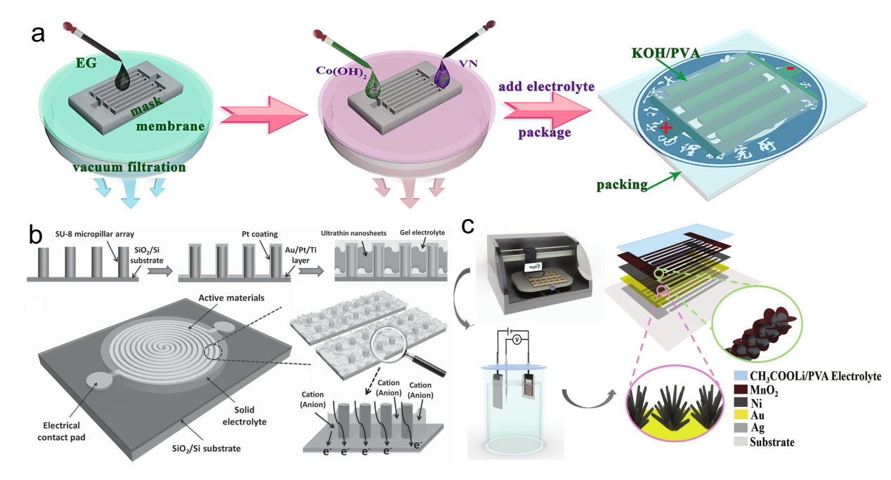 Figure 14. (a) Fabrication and structural characterization of SST-MPCs.[205] Copyright 2018, Nature Publishing Group. (b) Schematic of the fabrication process of SST-MPCs.[206] Copyright 2015, Wiley-VCH Verlag GmbH & Co. (c) Schematic of the printable fabrication procedure.[207] Copyright 2017, Wiley-VCH Verlag GmbH & Co. |