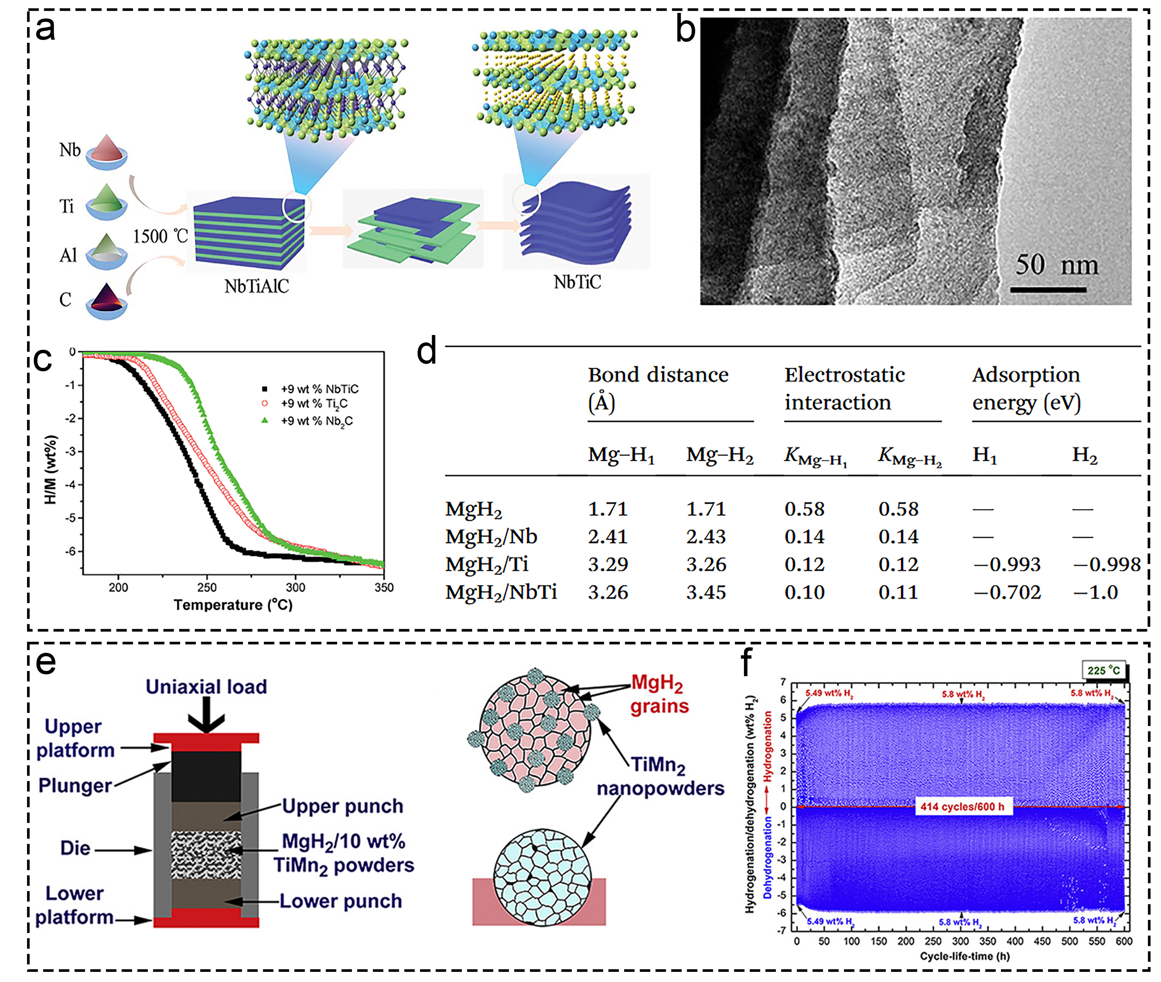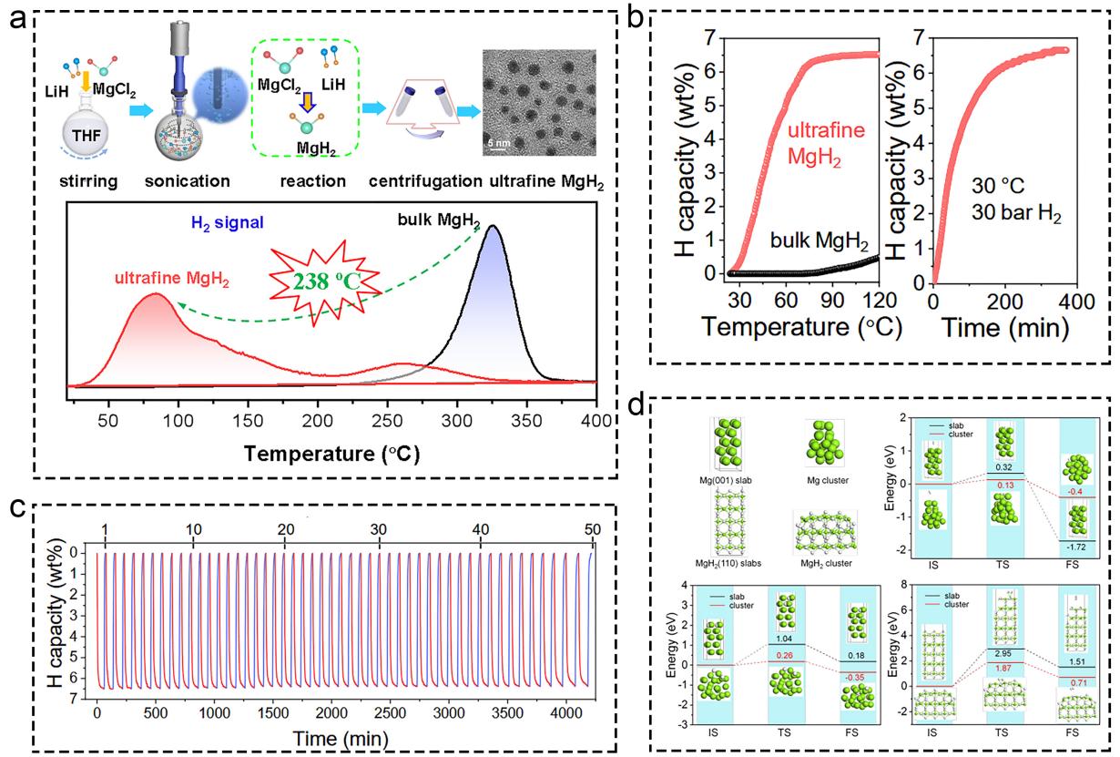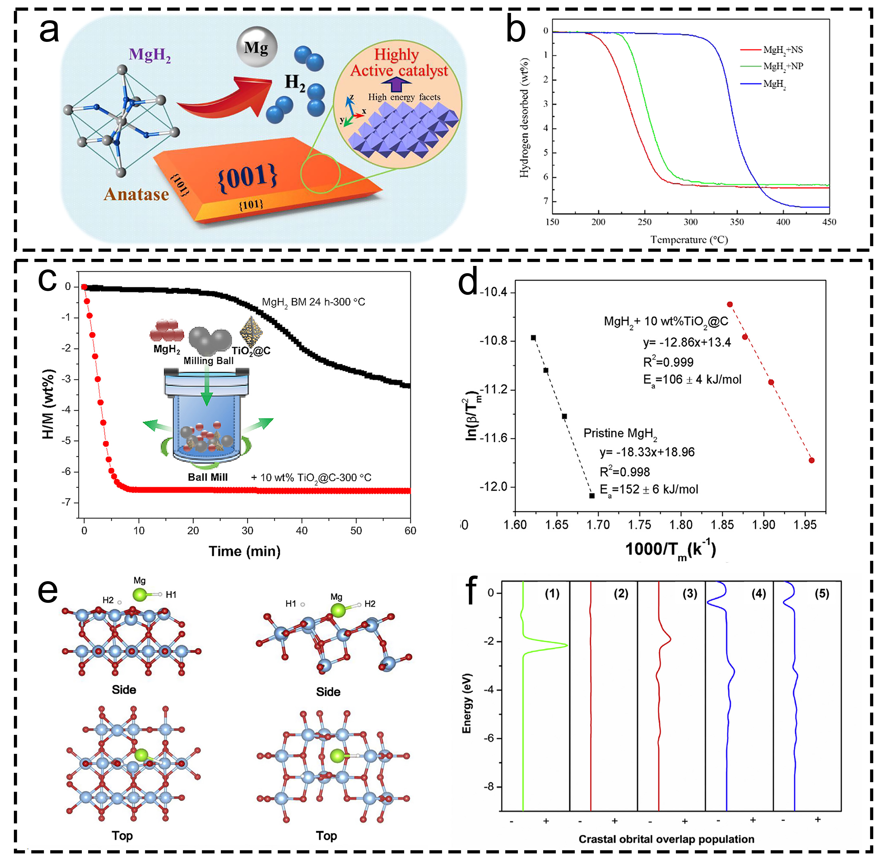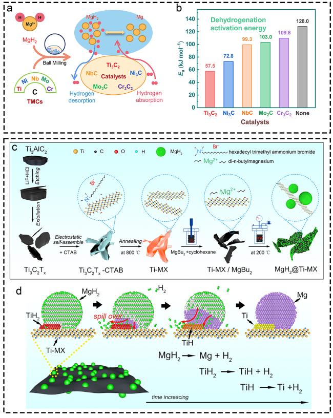 | Electron transfer effect | Weakening strength of Mg-H bond through charge rearrangement | Highly dispersed Ti or forms alloy/solid solution systems |