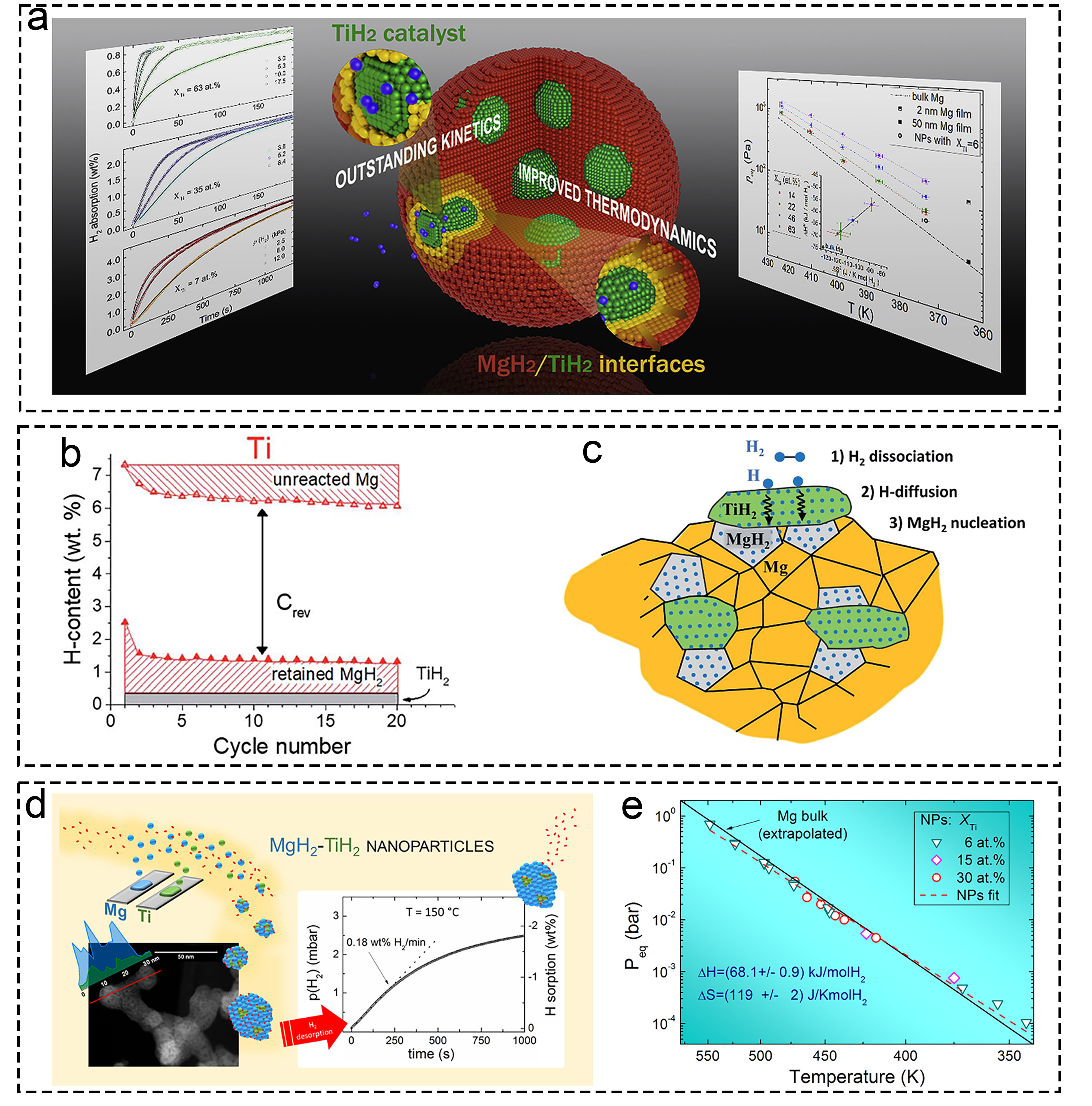 | “Hydrogen pump” effect | Interface efficiently catalyzes the dissociation/recombination of H2 | Nanoscale metal Ti or in-situ TiHₓ system |