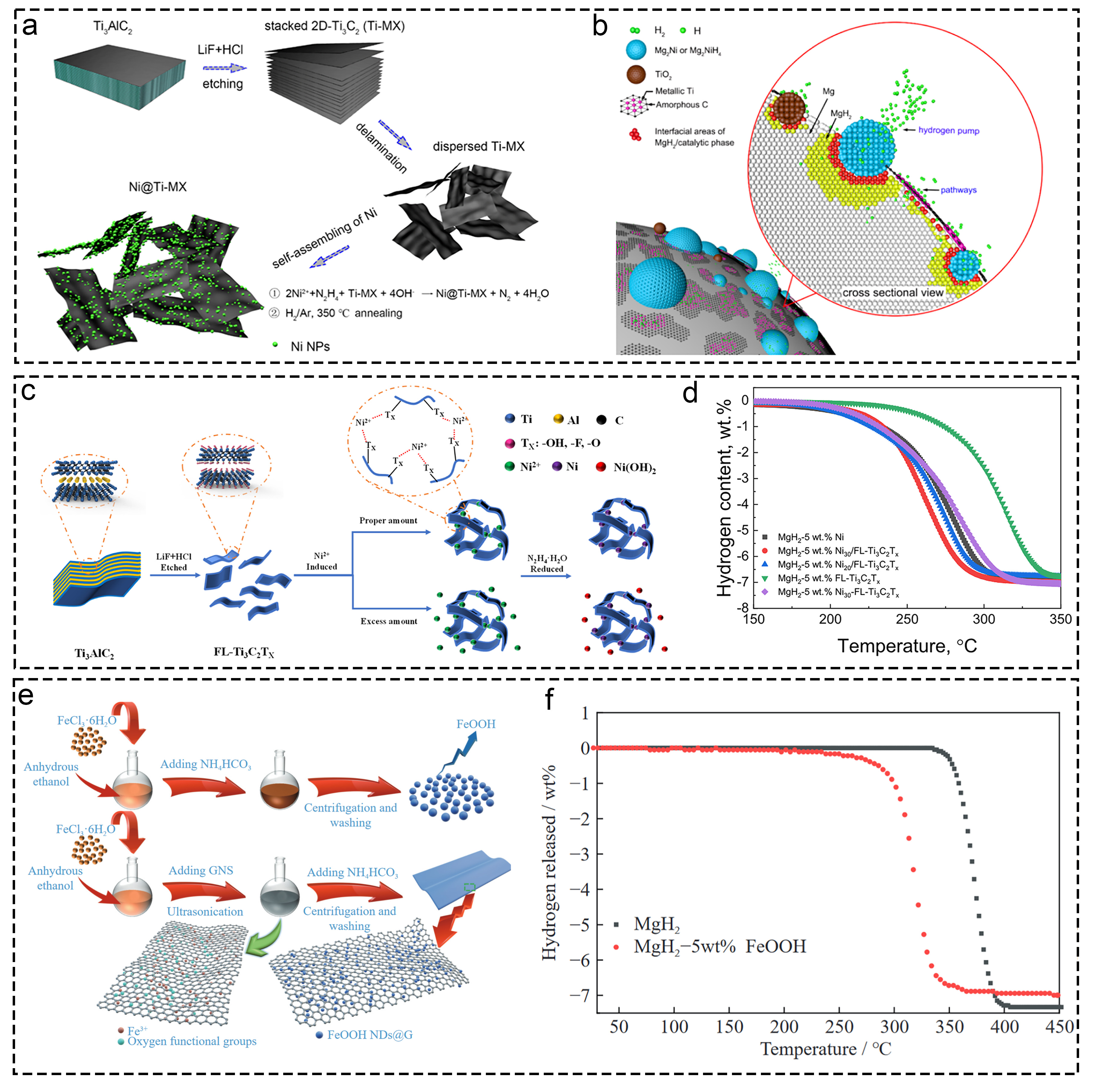 | 36 | MgH2-5wt% Ni30-FLTi3C2Tx | 250 | 5.83 | 106.92 | [316] |