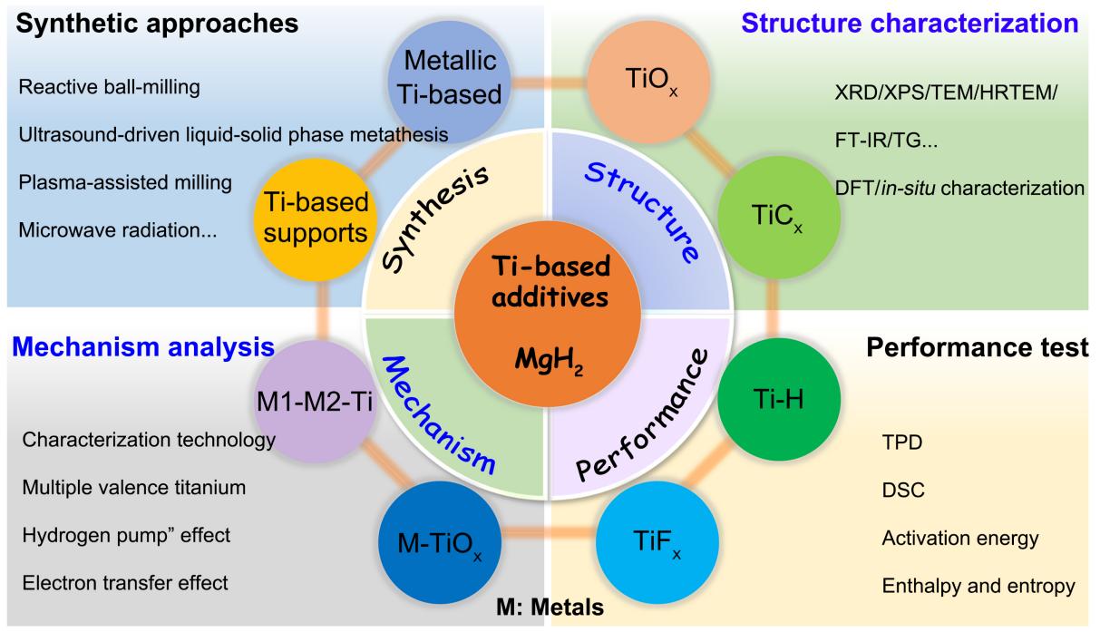Fig. 2 Schematic illustration of Ti-based additives on hydrogen storage of MgH2. |